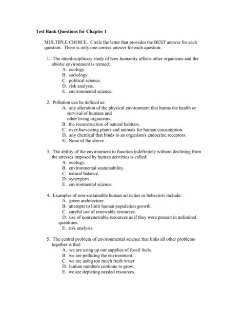 Download ENVIRONMENTAL SCIENCE TEST BANK ANSWERS AND QUESTIONS PDF Internet Archive